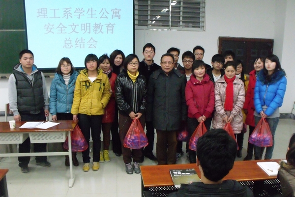 3月21日下午 ,理工系学生公寓安全文明教育总结会在图书馆102教室召开。系主任钟迪生教授,系有关负责人杨晓杰、赵佳,全体辅导员,各班学生干部及宿舍长参加了会议。会议由杨晓杰主持。