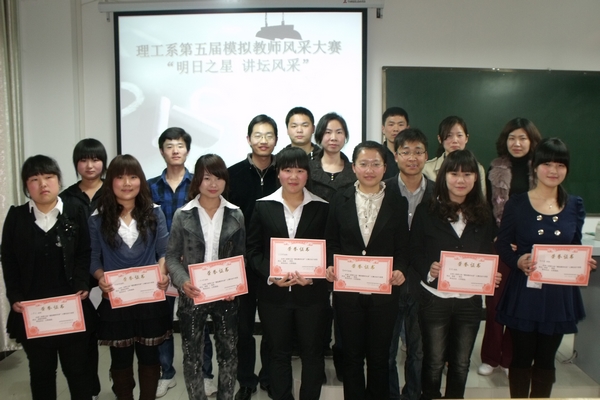 3月29日晚,理工系“明日之星,讲坛风采”第五届模拟教师风采大赛总决赛在教三楼402教室举行。学工秘书杨晓杰、各教研室主任、部分教师、辅导员及200余名学生观看了比赛。