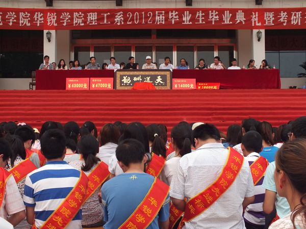 6月4日下午,理工系2012年毕业生毕业典礼暨考研表彰大会在教三楼广场前隆重举行。院办公室主任张柏平,教学部部长董迨传,督导督查室主任李增基,理工系主任钟迪生、副主任管文水,学工部部长助理、团委副书记张富庄和理工系全体师生参加了大会。大会由行政秘书胡秀云主持。