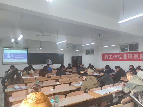 为进一步贯彻落实全国高校思想政治工作会议精神以及学校思想政治工作实施方案,落实立德树人根本任务,充分发挥课堂教学育人主渠道作用,积极推进课程思政建设。12月23号下午,我院在理工楼604、605教室组织开展了第三场课程思政经验交流会,院长肖生发、党委副书记张红梅、教学副院长李晓严以及全体教师参加本次会议,会议由副院长李晓严、教学秘书赵丹主持。学校课程思政建设工作小组组长刘志新等四人莅临指导,另外也邀请了学校教学督导专家吴锐教授参加此次交流会。