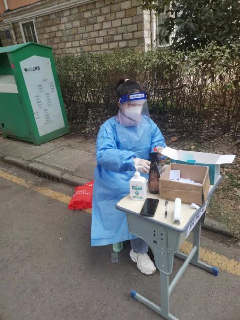 在进行核酸检测的时候,她主要负责采样管发放,帮助核酸检测维持秩序。早上七点半志愿者们就要开始提前准备,做好防护,布置场地。耐心帮助不懂具体如何操作的居民们。在寒冷的冬季,每次检测时间长达五个小时,但是从来没有一个人有过抱怨,大家在做好个人防护的同时也醒他人做好防护。