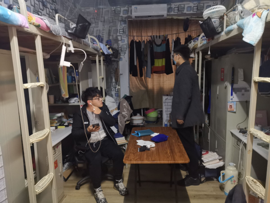 在宿舍检查中,辅导员们一直为学生强调和讲解学校疫情防控政策和措施,提醒学生注意安全防护。提醒变黄码学生根据操作步骤提交申请,不恐慌,不随意外出。同时,还温馨提醒学生们杜绝使用违规电器,保证宿舍的用电安全。