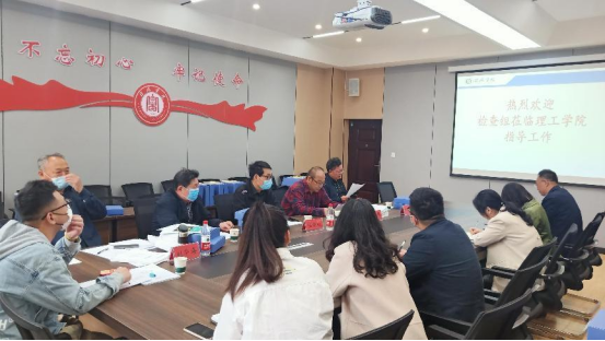 4月20日下午,为确保期中教学各项工作平稳有序开展,校检查组长任柏林、程怀儒,督导专家王国际、刘华海、杨保华等专家教授深入我院检查期中教学工作,我院教学副院长李晓严、教学秘书赵丹以及各教研室主任参会。