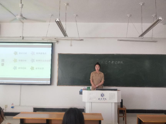 本次比赛共分为三个环节:说课、才艺展示、答辩提问。参赛选手运用板书、多媒体课件、自制教具等多种形式进行模拟授课。授课过程中,选手们教学思路清晰、仪态得体大方、语言准确精炼,充分展示了我院学生所具备的专业知识和综合素养以及扎实的教学功底。经过一下午比拼,李锰甜、李东育、杜若菲三位同学获得优胜奖。模拟授课结束后,评委老师进行现场点评,从教学内容、教学方法、教态等多方面给选手提供了宝贵的意见和建议。