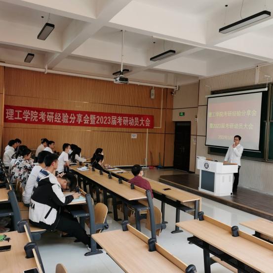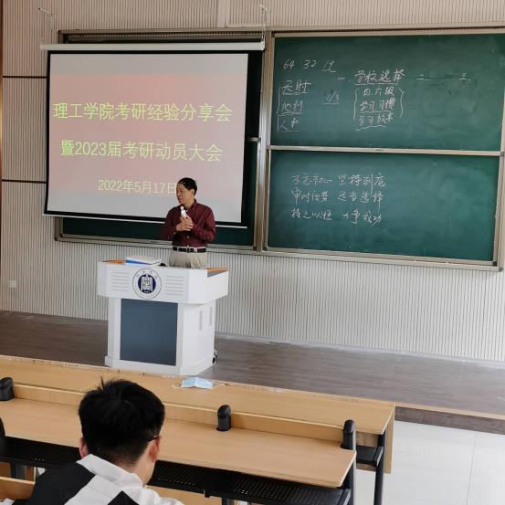 考研优秀师生代表分别作交流发言。学院金牌考研辅导名师吕海成为现场同学分享了考研经验,他告诫考研同学们要根据自身情况合理选择报考的院校,进行有效的针对性复习,同时鼓励同学们在考研途中互相帮助,相互交流、共同进步。2022届考取研究生学生代表李晓说:“真正的顺其自然,是竭尽全力之后的不强求,而非两手一摊的不作为。希望励志考研的同学们坚定理想信念,做到善始善终。”