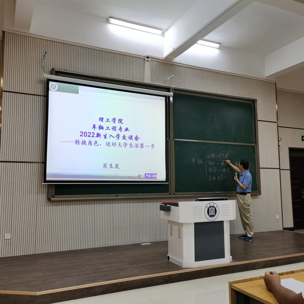 车辆工程专业特邀院长肖生发作专业教育讲解,肖院长从汽车产业、车辆工程专业的发展、毕业生的就业情况和人才培养等四个方面对2022级新生进行了专业教育,为新生指明了大学四年的发展方向和要求,强调了大学生应当具备的职业素质和专业技能。肖院长对全体新生提出六点“新”寄语:融合新环境、立足新起点、明确新目标、迎接新挑战、做出新努力、争创新成绩。