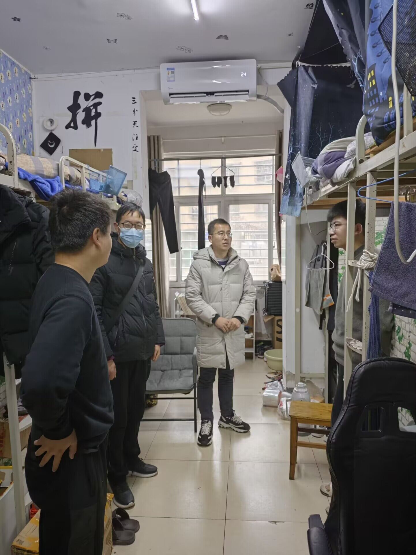新学期伊始,为更好地了解学生返校后的思想动态和学习生活情况,2月12日下午,太阳集团网tyc9728学工秘书杨晓杰及全体辅导员深入学生宿舍,关心慰问返校学生。