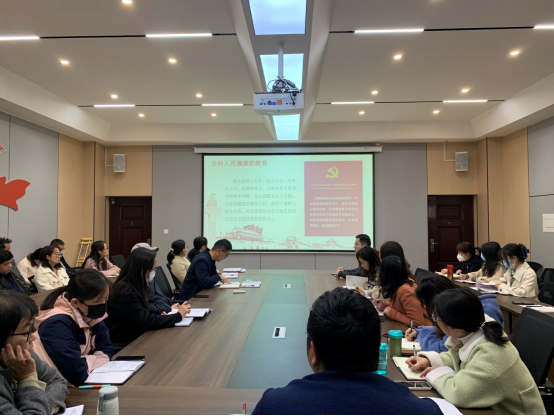 最后,肖院长向与会的党员教师提出三个方面的要求:一是党的二十大报告对大家的工作具有强烈的指导意义,肖院长要求大家会后要继续认真学习党的二十大报告中关于教育的重要论述,将二十大精神作为今后工作的行动指南,从而更好地培养德智体美劳全面发展的社会主义合格建设者和可靠接班人;二是肖院长鼓励各位老师在日常工作中要自信,对自己的工作生活要充满信心,不断提高自身的工作能力,从而更好地培养学生立足社会的本领。三是肖院长强调,各位党员老师在学校本科教学合格评估的关键期要拧成一股绳、心往一处使、劲往一处用,全力以赴齐心协力做好本科教学合格评估工作。