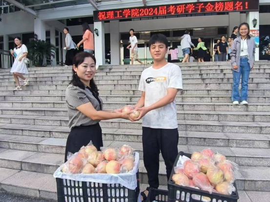 随后,到场老师向同学们发放了慰问品,希望同学们都能调整好状态,规划好自己的复习计划,“桃”得彩头,一战成硕。同学们对老师们的慰问和鼓励表示感谢,纷纷表示会继续按照学习计划做好复习,把握住暑期的黄金备考时间,全力以赴,不辜负学院和老师的期望。