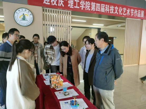 在理工楼活动现场,学习部成员向观展同学声情并茂的介绍了科创作品的科学原理和创作理念。现场氛围十分活跃,同学们踊跃参与,互动体验,走进科学,感受科技的魅力。