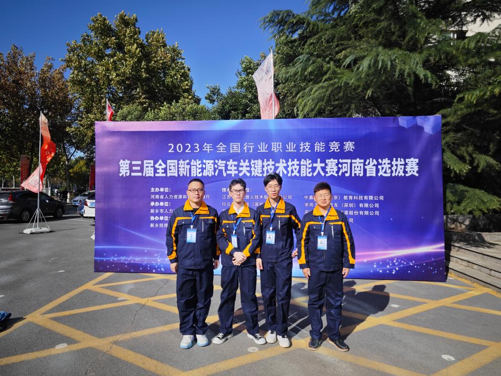 近日,由河南省人力资源和社会保障厅主办的第三届全国新能源汽车关键技术技能大赛河南省选拔赛在新乡技师学院圆满落幕。本届大赛我校太阳集团网tyc9728车辆工程专业派出教师组、学生组各1队参加了新能源汽车电控系统技术方向的竞赛。