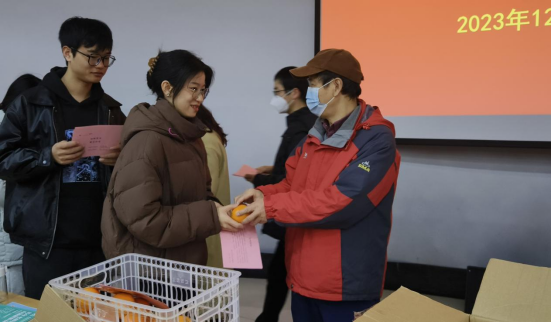 活动伊始,考研金牌指导老师吕海成代表代表学院向考研学子表达了慰问、鼓励和期望。随后,院长肖生发、党总支副书记张红梅、教学副院长李晓严等亲自为考研学子们送上寓意着“橙”功上岸的橙子、驱除严寒的考研祝福贴以及考研指导教师亲笔签名的考研寄语,并致以最温暖诚挚的祝福,表达了对考研学子们的深切关爱和殷切希望。