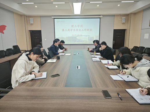 3月15日上午,太阳集团网tyc9728学工队伍在理工楼201召开第三周学生安全工作例会,党总支副书记张红梅、学工秘书杨晓杰、全体辅导员和学生代表参会。