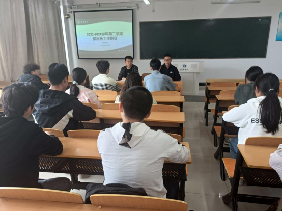 公寓负责人杨康强就楼层长最近的工作提出了表扬,希望他们再接再厉作出更优异的成绩;除此之外再次明确了楼层长的工作职责,希望楼层长们切实履行好职责,密切关注楼层学生情况;最后强调了公寓用电安全、防火防盗、室友关系等公寓问题,梳理了学生宿舍突发事件的处理流程,有问题及时向辅导员老师反馈。