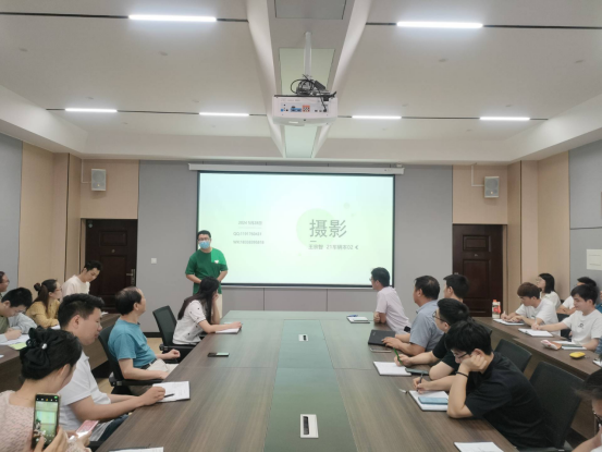培训过程中,王宗智同学深入浅出地介绍了摄影的三大核心要素:光圈、快门速度和ISO,并通过生动的案例和直观的演示,让在场的教师们理解了如何在不同的光线条件下调整这些参数,以捕捉最佳的摄影影像效果。他通过对近期学院新闻中照片进行案例分析,点评了每张照片的拍摄技巧及如何构图优化以达到最优视觉效果。