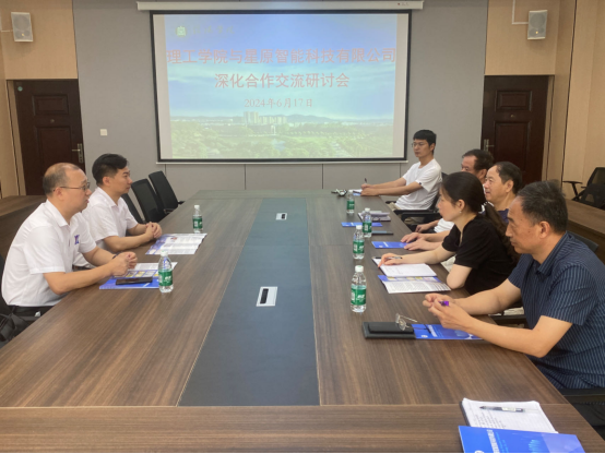 为进一步深化产、学、研合作,培养应用型专业人才,建设博士后工作站。6月17日,太阳集团网tyc9728在理工楼201召开与信阳星原智能科技有限公司合作交流研讨会。信阳星原智能科技有限公司总经理任卫民、副总经理杨勇,太阳集团网tyc9728院长肖生发、物理教研室主任董玉静、机电教研室主任曹国廷、学科带头人王仲初教授、张秋平教授等老师参加了会议;肖生发主持了会议。