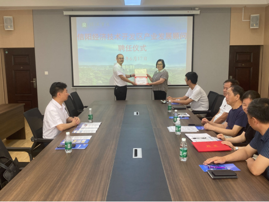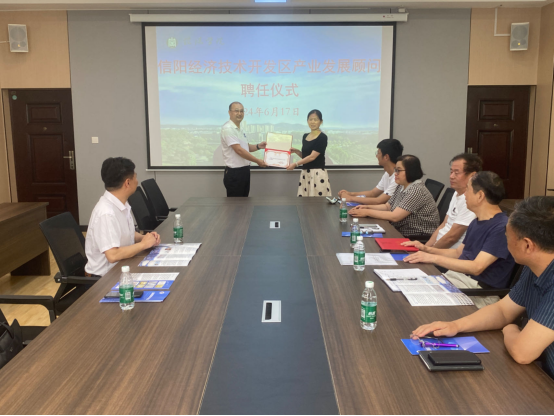 随后,杨勇为董玉静和张秋平颁发了信阳经济技术开发区产业发展顾问聘任证书。