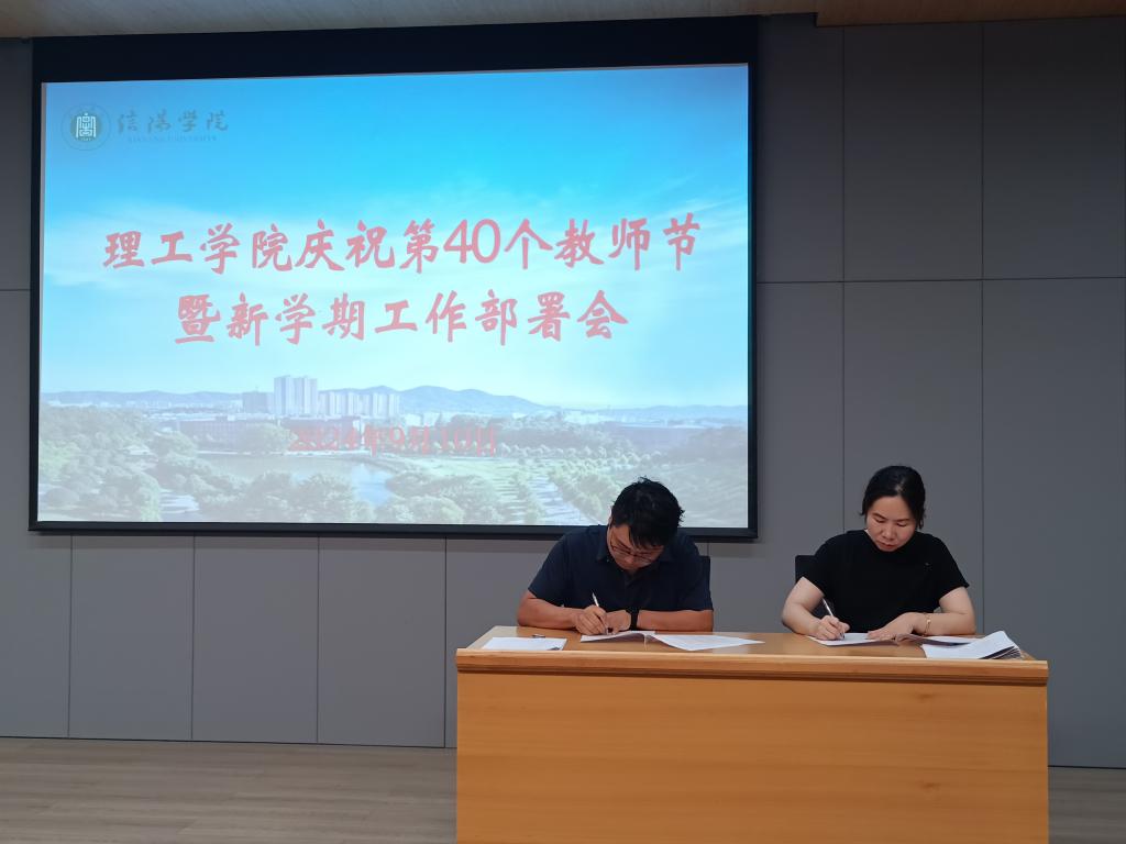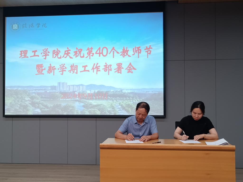 会议第二阶段,教学副院长李晓严对新学期的教学工作进行了详细的部署和安排,举行了教学任务书、安全责任书签订仪式,各教师代表分别与肖院长和李院长共同签订了教学任务书、安全责任书协议。