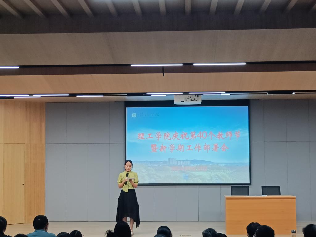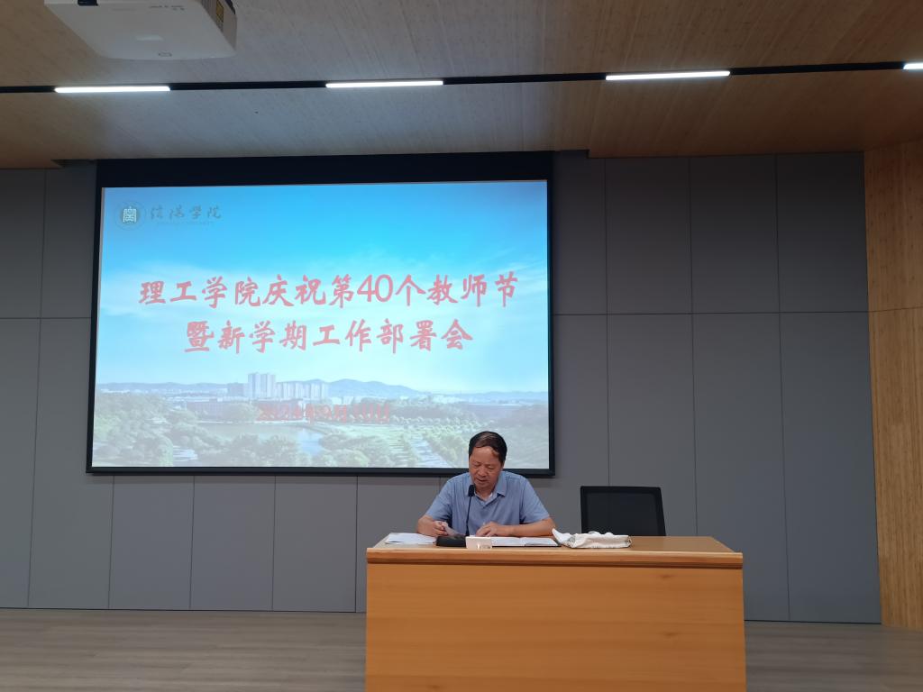 9月10日下午,太阳集团网tyc9728在图书馆101会议室召开庆祝第40个教师节暨新学期工作部署会,院长肖生发、教学副院长李晓严以及全体教师参加本次会议,会议由行政干事樊瑞主持。