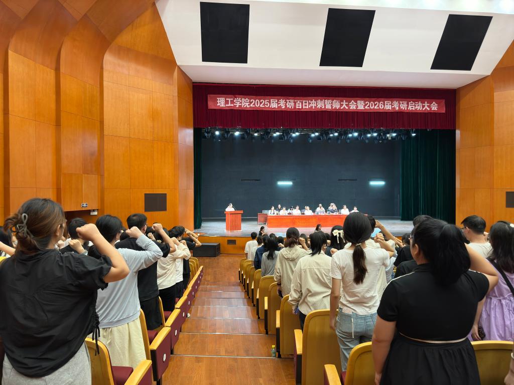 随后,一场庄重的宣誓仪式将会议推向高潮。在辅导员秦斯雅老师的带领下,全体考研学子起立,以整齐划一的动作,高举右手,郑重其事地宣读誓言,字字铿锵,表达着他们坚定不移的考研信念与矢志奋斗的决心。