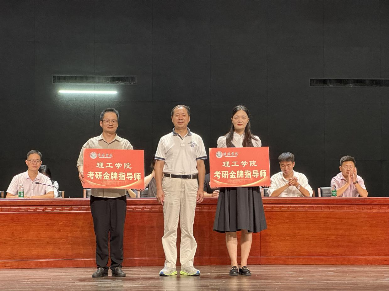 在热烈的掌声中,肖生发院长为考研明星指导师、考研金牌指导师授牌;李晓严副院长为各优秀考研小分队授旗,对老师和同学们的努力给予肯定和赞扬。