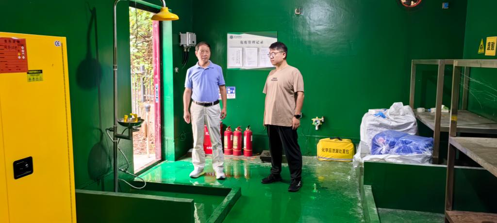 首先,肖院长一行检查了理工楼609药品、仪器室及危险化学品存储区,危废中转站等重点要害部位,全部的化学实验室和生物实验室,接着又检查了其他专业的实验室。检查过程中,肖院长表示,“安全重于泰山”,每位老师务必肩负起实验室安全的责任,要求每位老师强化安全风险防控意识和能力,对于假期不开放的实验室要关闭电源,锁好门窗,以防溢水、漏电等事故发生。