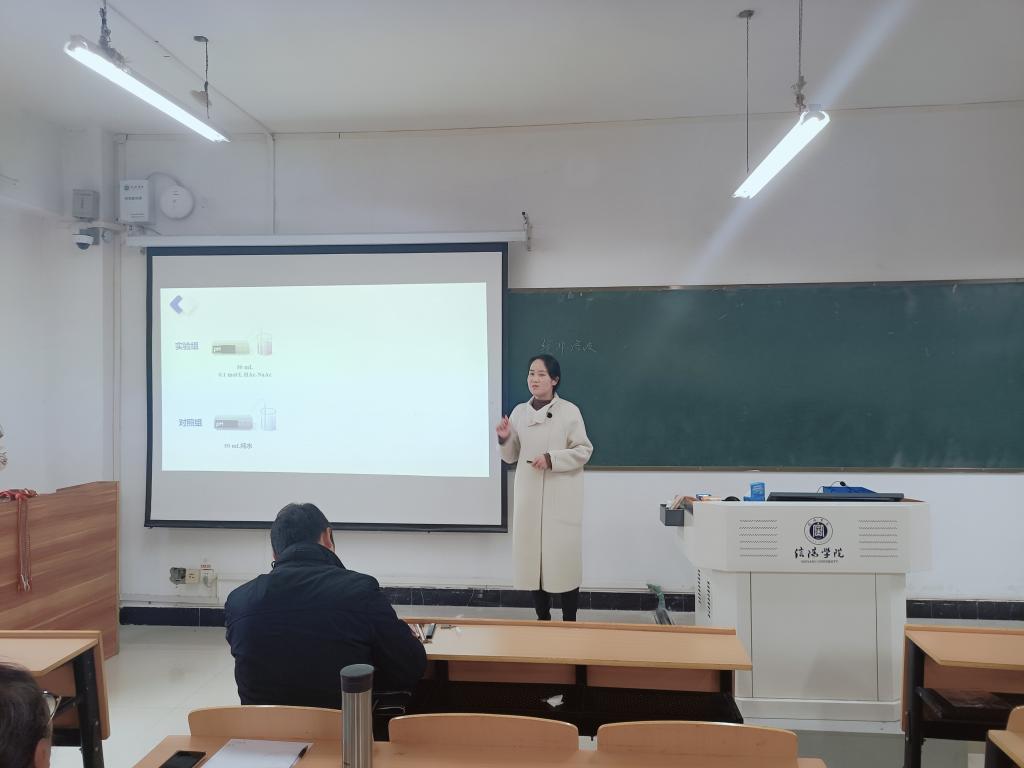 示范课上,张艺老师以“缓冲溶液”为主题,从生活中多种食物的酸碱性引入,从缓冲溶液组成、缓冲机制、PH计算、知识拓展与课后作业等方面详细讲解了缓冲溶液的相关概念;贾小平老师从刚体转动惯量的影响因素和质量连续分布刚体的转动惯量计算两方面,通过启发式提问、剖析演示案例等,开拓思路、循循善诱、环环相扣,为大家详细讲解了“钢体的转动惯量”这一主题内容。