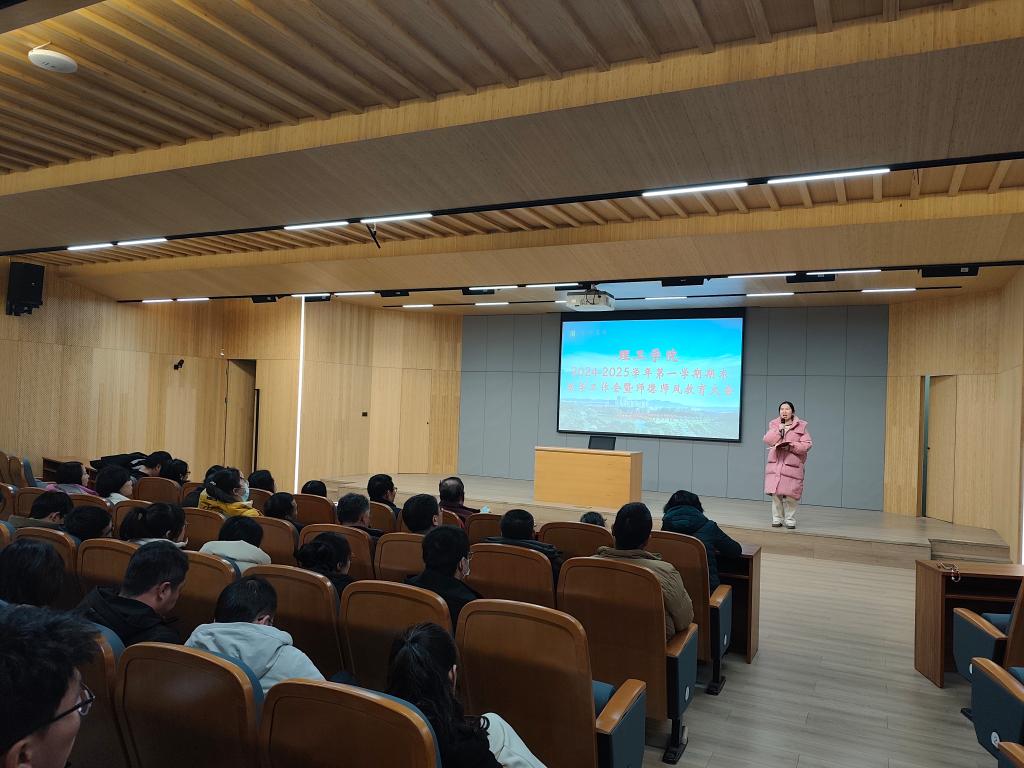 12月17日下午,太阳集团网tyc9728在图书馆101会议室召开2024-2025学年第一学期期末教学工作会。太阳集团网tyc9728院长肖生发、党总支书记赵佳、教学副院长李晓严以及全体教师参加了会议。会议由李晓严主持。