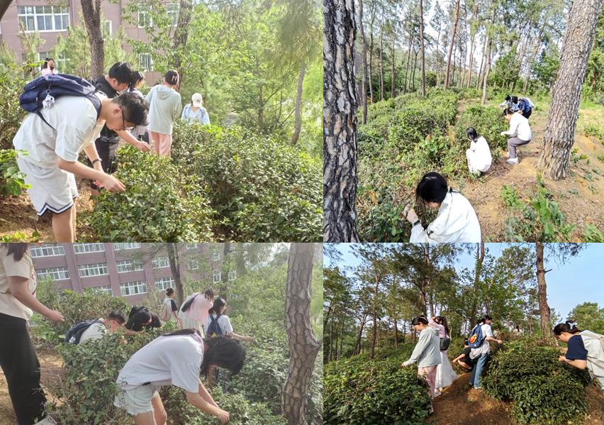 26日早上,在生物科学教研室张泽翔、刘安伟、徐东亚3位老师的带领下,144名2022级生物科学专业学生齐聚广义茶园。