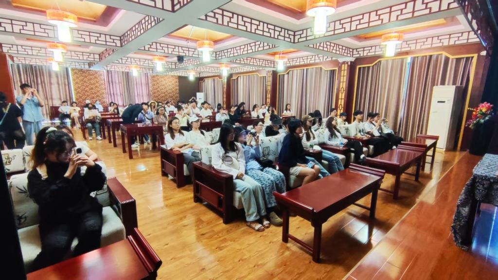 在展示车间参观完后,同学们带着极大的热情到报告厅,同学们向左经理提出诸多问题,如信阳毛尖如何区分优劣、信阳毛尖到底是明前茶好还是雨前茶好等。左经理一一为同学们进行解答。现场氛围十分热烈。