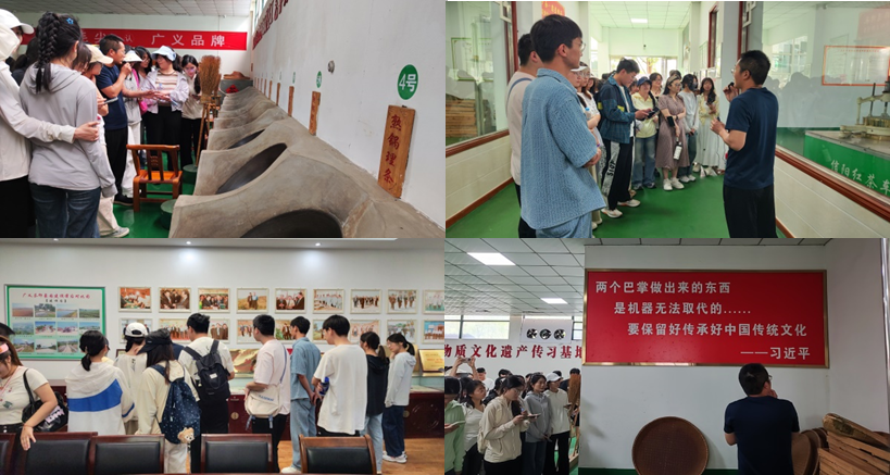 在广义茶园左经理的陪同下,逐个参观了信阳毛尖、信阳红的生产车间。参观过程中学生兴趣极为浓厚,对各类制茶工具十分好奇,左经理一一为同学们进行解答,并详细讲述了信阳毛尖、信阳红在制作过程中茶多酚、茶叶碱等变化。在炒茶车间,展示了手工制茶的温度控制及各个炉灶的功能,并深刻的解读了习近平总书记说的“两个巴掌做出来的东西,是机器无法取代的”的指示。