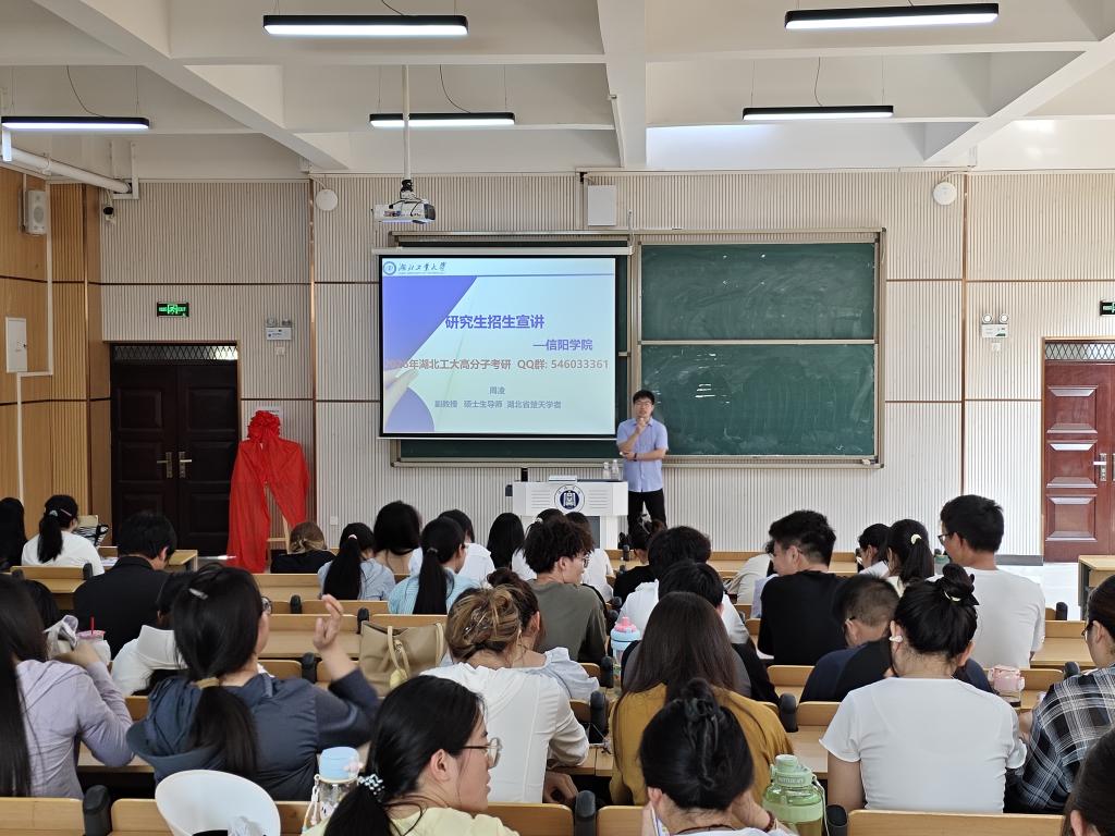 接着,周凌分别介绍了湖北工业大学学校概况、材料与化学工程学院学位点发展、师资队伍、科研平台、奖助体系等,着重讲解了高分子专业报考信息,帮助学生明确目标,做好考研规划。张谦就化学专业师资队伍、报考指南、奖助体系等进行了深入讲解,并强调院校选择需兼顾学术资源与个人适配度。