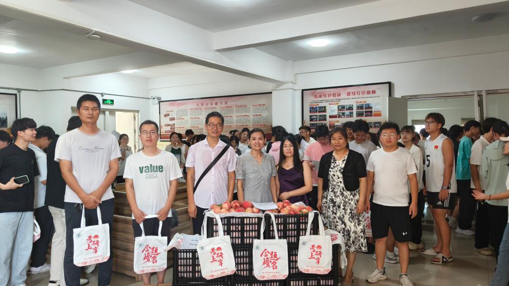 学院的关怀不仅体现在言语鼓励中,更融入每一份精心准备的“考研加油包”里:考研复习指南——由各专业考研指导名师编写,精准梳理学科重点,提供高效备考策略;“金榜题名”上岸福袋——承载美好祝愿,成为学子们争相合影的“幸运符”;鲜甜水蜜桃——寓意“桃”得彩头,一战成“硕”,为炎炎夏日增添一份清凉与甜蜜。