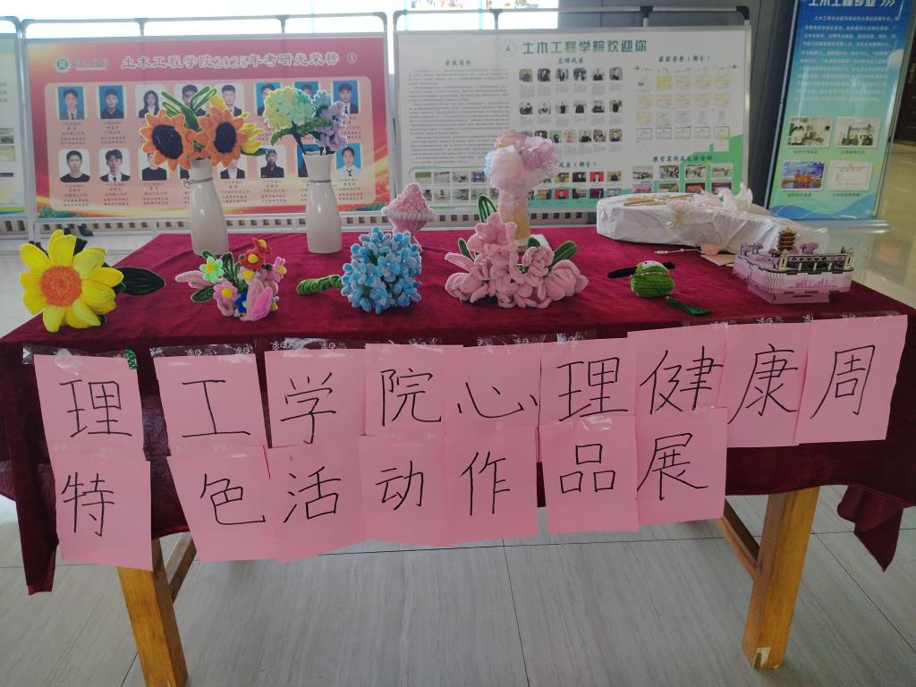为关注学生心理健康,丰富校园文化生活,10月30日下午,太阳集团网tyc9728在理工楼一楼大厅开展心理健康周特色活动——扭扭棒创意手工作品展,以充满童趣与创意的手工形式,为同学们搭建了一个释放压力、抒发情感、交流互动的心灵平台。