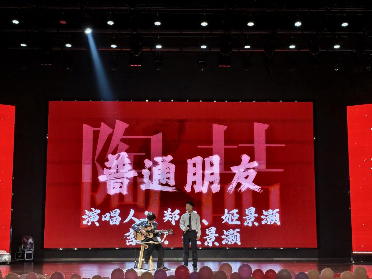 在“终章·再谱新篇”篇章中,晚会氛围层层推高,王柄杰的独唱《光年之外》以辽阔声线唱响青春梦想;王雨等同学的朗诵《百年芳华 薪火长明》,以铿锵语调诉说百年征程的峥嵘与希望。最后,全体演员合唱《有我》,激昂的歌声汇聚成青春的誓言,为晚会画上圆满句号。