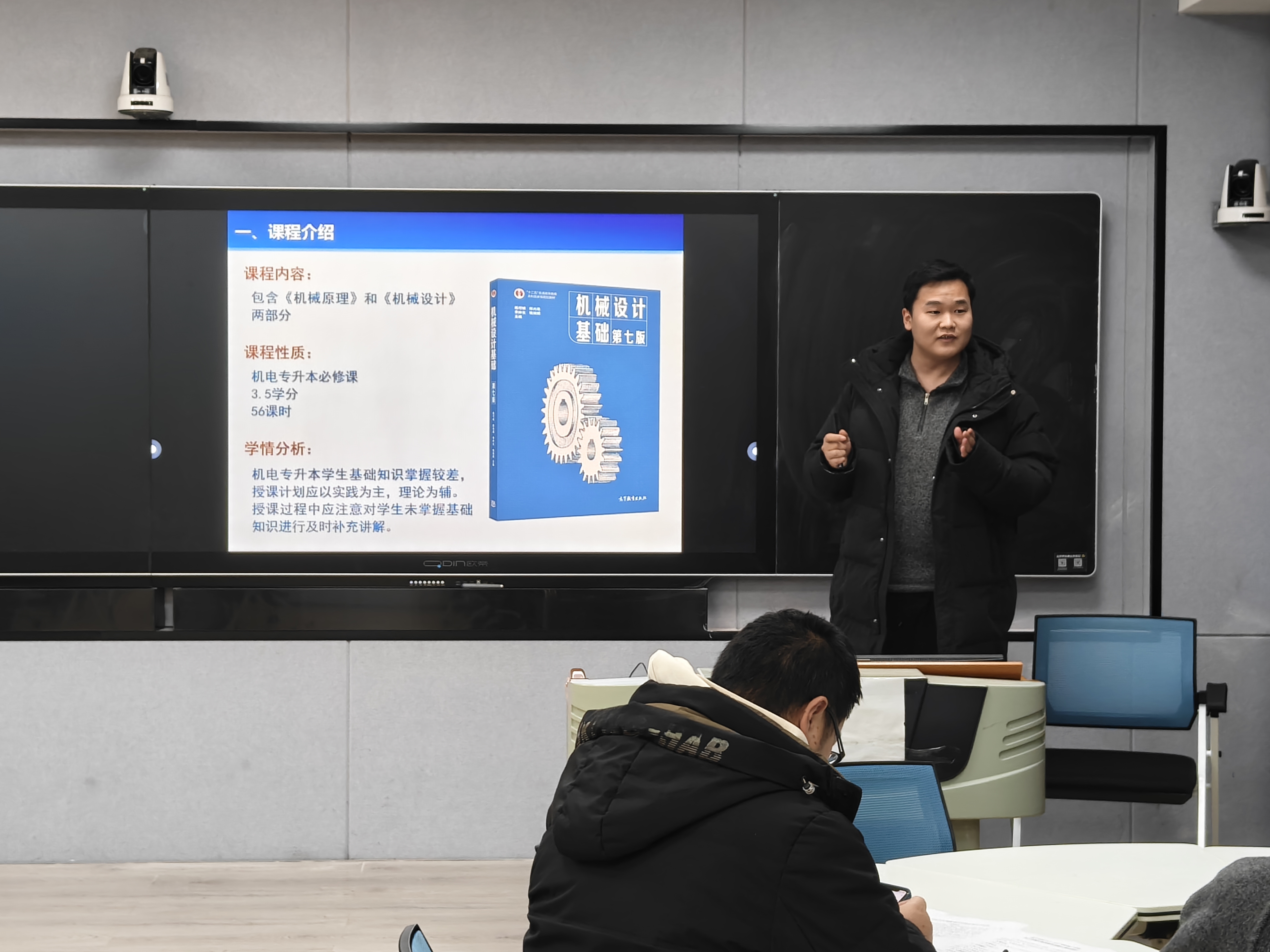 12月30日下午,太阳集团网tyc9728在人文楼南楼103和113教室举行2025-2026学年第一学期新入职教师教学技能比赛。比赛邀请了校督导专家张小玉教授,机械电子工程教研室曹国廷、王秀丽教授,汽车工程教研室杜来林教授、王思满老师,大学物理教研室贾小平副教授担任评委。比赛分两组进行,分别由张小玉和曹国廷主持。