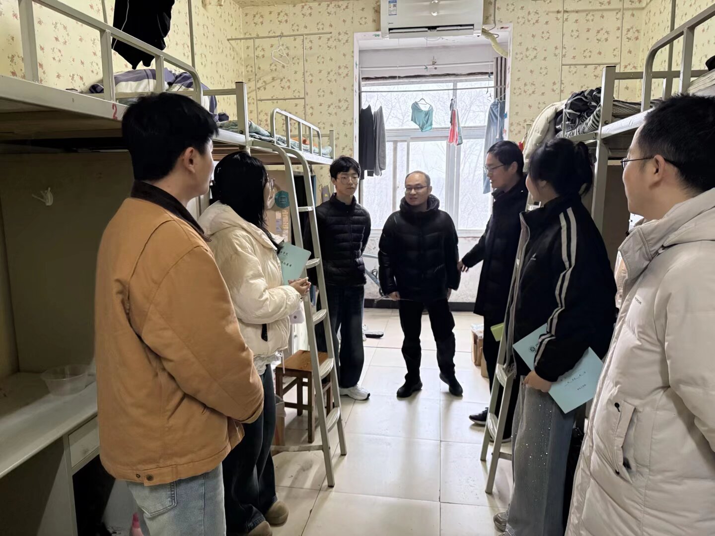 花端阳一行逐一走进宿舍,亲切问候同学们的假期生活、考研情况、返校适应情况、身心状态及新学期规划,认真倾听同学们在学习和生活中遇到的困难与诉求,现场回应,帮助学生答疑解惑。同时,走访的辅导员们还对宿舍用电安全、卫生环境、内务整理等情况进行全面检查,对整洁有序、干净卫生的宿舍环境给予充分肯定,对存在的安全隐患和卫生问题提出整改意见,提醒同学们严格遵守宿舍管理规定,杜绝使用违规电器,增强安全防范意识,共同营造安全、文明、和谐的宿舍环境。