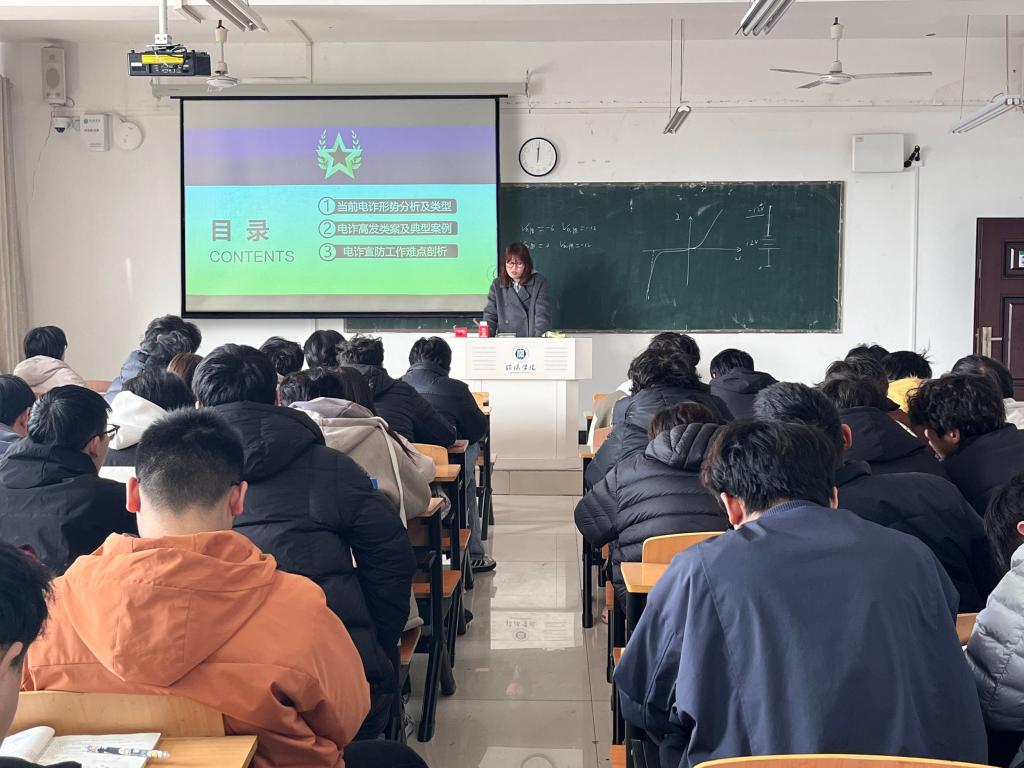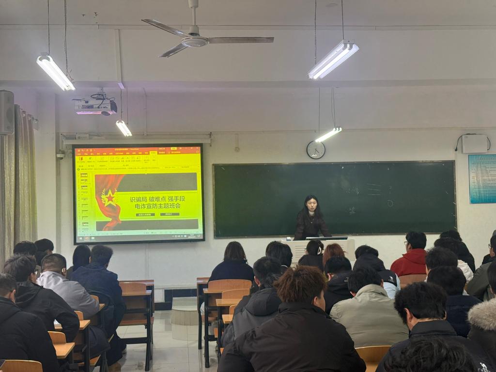 当前,电信网络诈骗犯罪手段不断翻新,已成为威胁师生财产安全的主要风险之一。学院将“开学反诈”作为本学期安全教育的第一课,确保反诈主题班会覆盖全院每一个班级、每一名学生。在主题班会上,辅导员结合专题学习材料,深入剖析了当前针对大学生的虚假贷款、冒充公众人物追星诈骗、网络游戏虚假交易、刷单返利等高发类案,并揭示了“冒充熟人、领导”“冒充客服退款”等骗局的套路,用真实案例教育引导学生破除“我不会被骗”的侥幸心理。