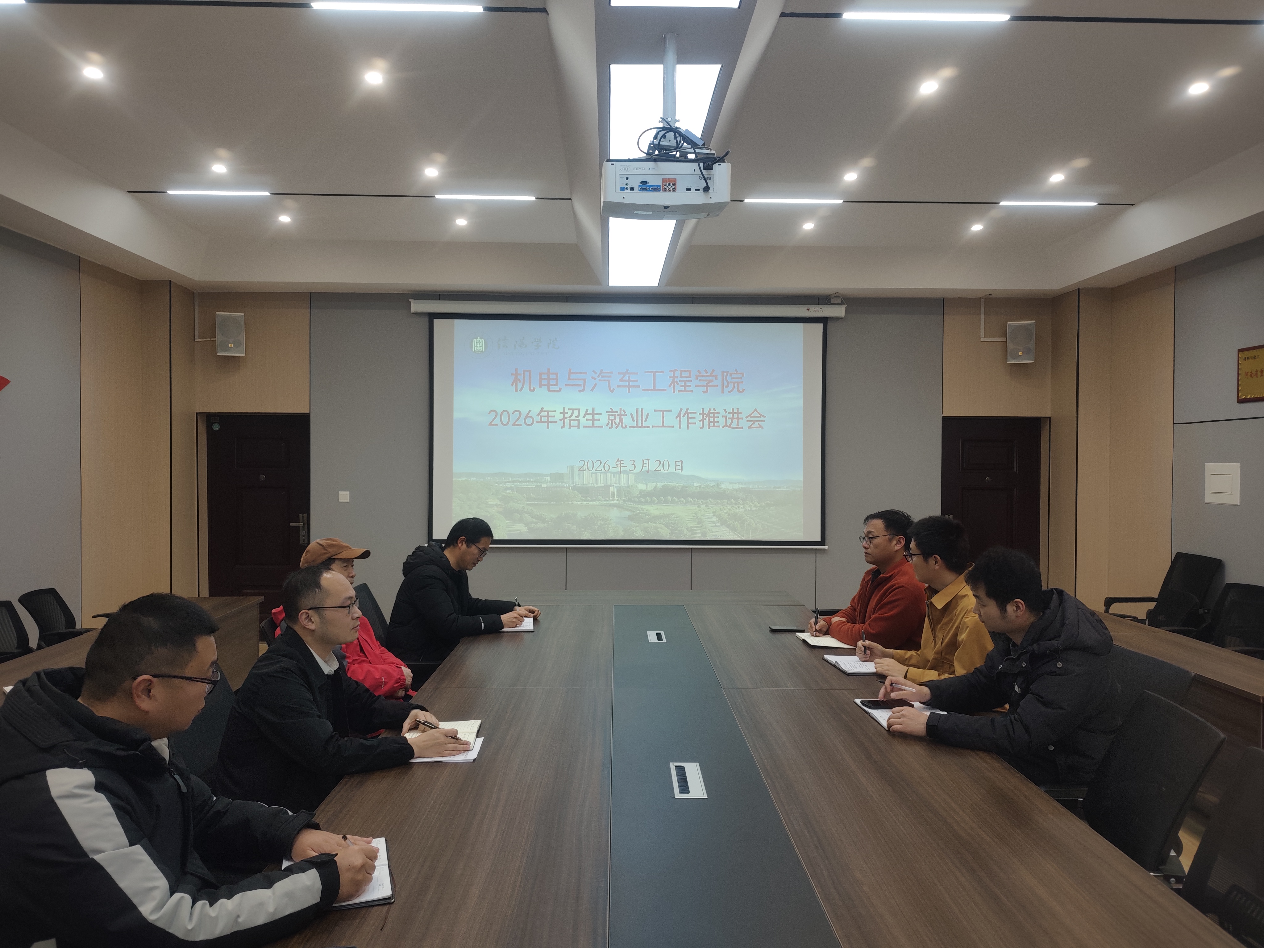 3月20日下午,机电与汽车工程学院在理工楼201会议室召开2026年太阳集团工作推进会,学院院长肖生发、党总支书记花端阳、行政班子、教研室主任和辅导员参加会议,会议由肖生发主持。