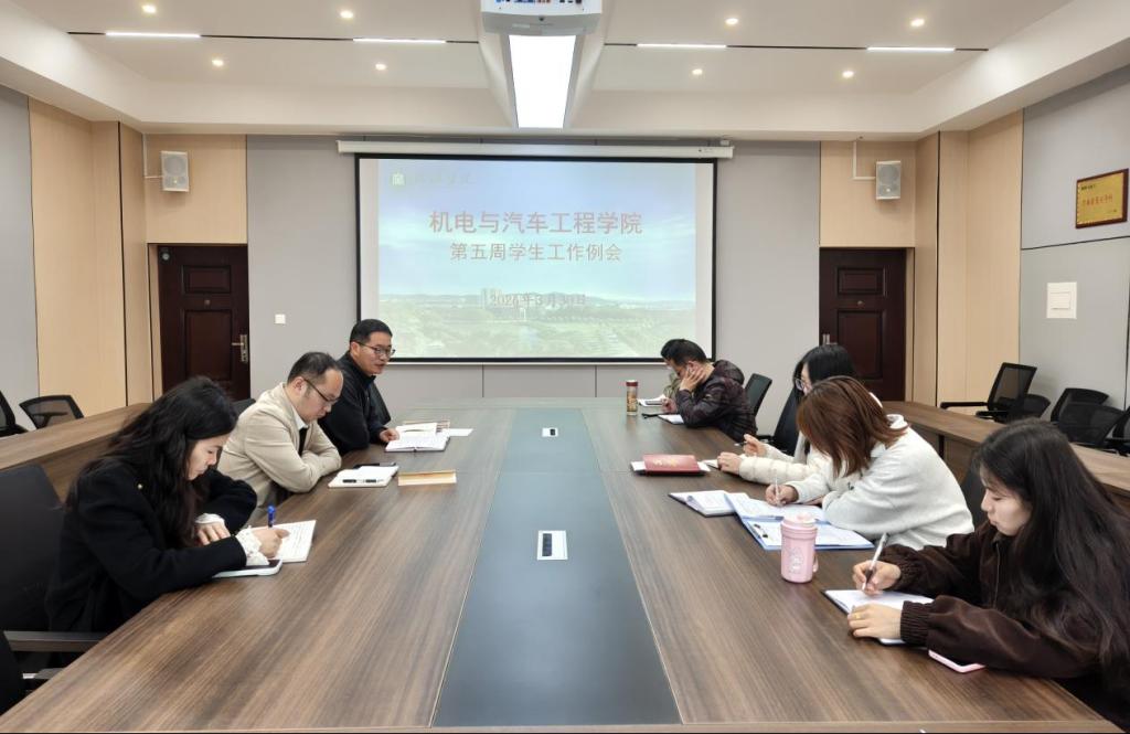 3月30日,机电与汽车工程学院在理工楼201会议室召开第五周学生工作例会。学院党总支书记花端阳、学工秘书杨晓杰及全体辅导员参会,会议由学工秘书杨晓杰主持。