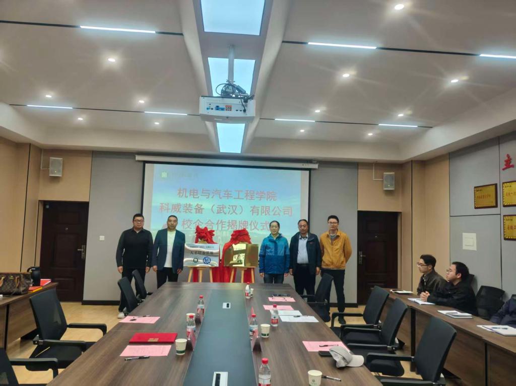 为深化产教融合、校企协同育人,4月15日下午,机电与汽车工程学院与科威装备(武汉)有限公司校企合作签约与揭牌仪式在理工楼201会议室隆重举行。科威装备(武汉)有限公司总经理孙炜、人事经理魏艳,机电与汽车工程学院院长肖生发、教学干事王思满及教授、教师代表出席签约仪式。王思满主持了签约仪式。