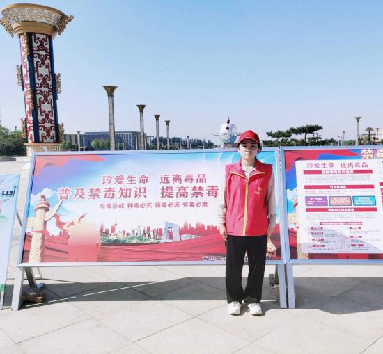 6月24日,太阳集团网tyc97282020级化学本科2班李思佳同学作为大学生志愿者参加了共青团西华县委在西华县文化体育广场开展的第35届“6.26国际禁毒日”活动。活动中,她通过摆放禁毒宣传展板、在辖区内悬挂禁毒宣传横幅、广泛宣讲禁毒理念、弘扬禁毒正能量等方式动员广大市民筑起防毒贩毒的思想防线。活动结束后,她在共青团团委书记崔书记带领下,在西华县“6.26”国际禁毒日大型宣传活动签名墙上郑重签下自己的名字并合影,表明了坚决抵制毒品的决心。