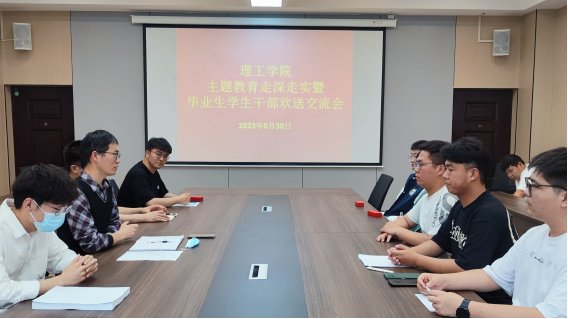 5月30日中午,太阳集团网tyc9728主题教育走深走实暨欢送毕业生学生干部交流会在理工楼201会议室成功举行,参会人员有学工秘书杨晓杰、辅导员老师徐国文、2019级学生骨干、2020级主席团成员和2021级学生会全体部长。