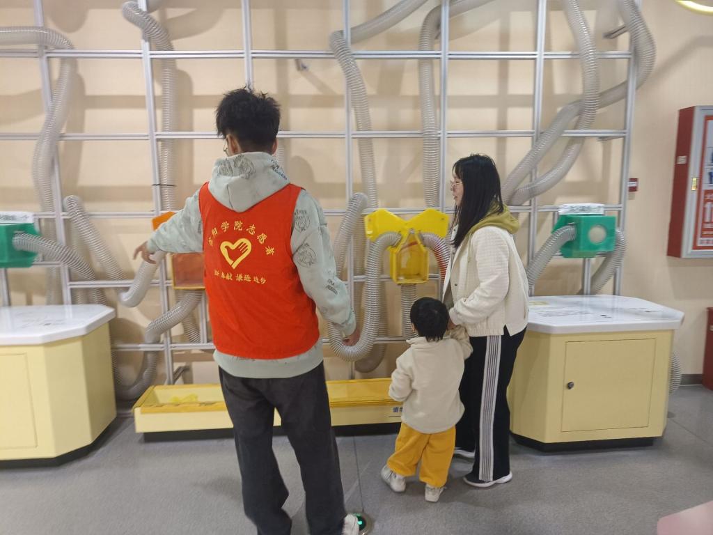 部分志愿者负责维护科技馆的秩序。他们在人群密集的区域耐心地引导游客,确保大家能够有序地参观展品,避免出现拥挤和混乱的情况。同时,他们积极解答游客们关于科技馆设施使用方面的疑问,为游客提供了极大的便利。