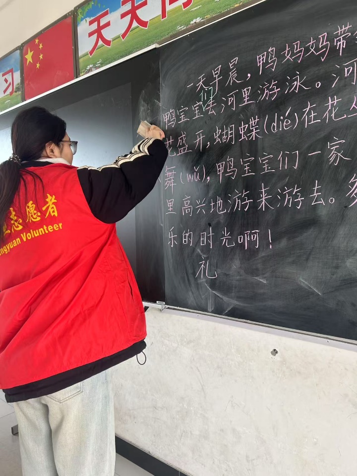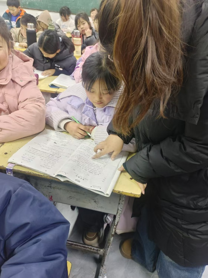 自2025年1月2日起,吕冰洁同学便到了家乡基层的张南小学进行了为期19天的社会实践活动,实践内容包含教育辅导、资料整理、公益服务。此时临近期末,处于复习阶段,在学生遇到不会的习题时吕冰洁同学便对他们进行讲解,了解学生,因材施教,帮助同学们取得了优异的成绩。