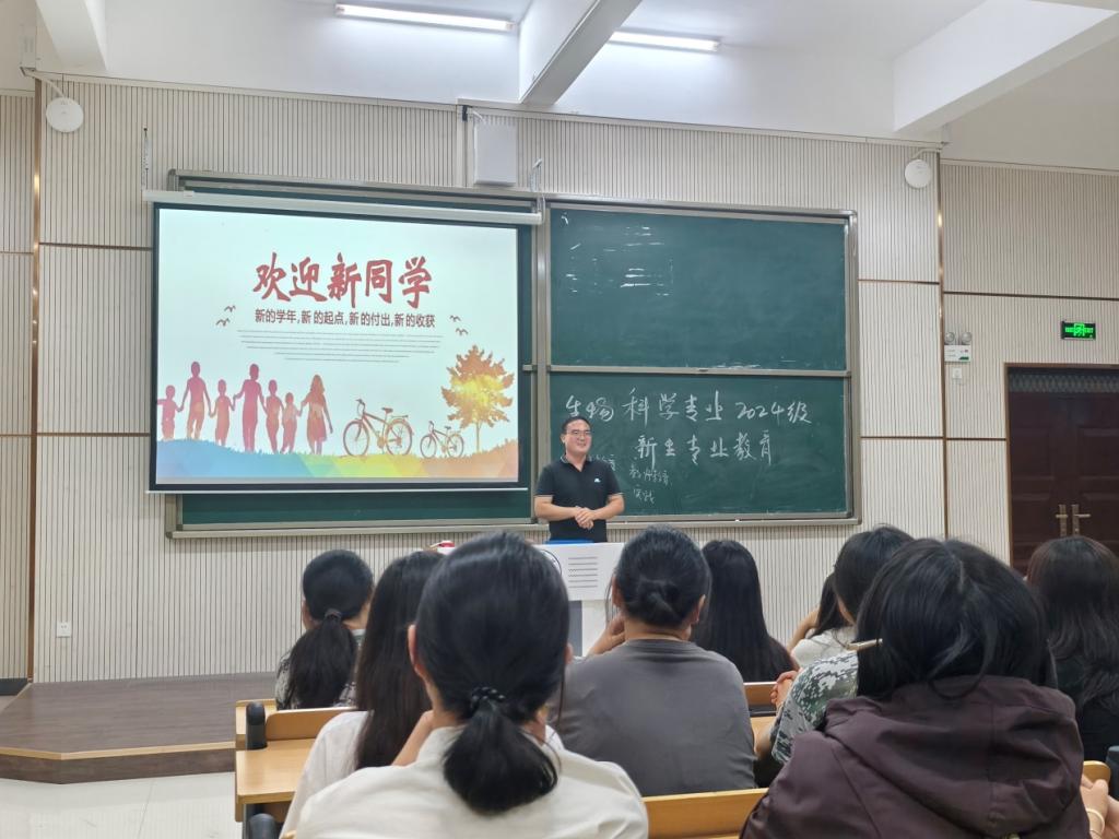 随着2024级新生顺利完成入学工作,生物科学教研室为促进学生更快的了解生物科学专业,尽快适应大学生活。9月11日晚,高进勇主任于实训中心104组织召开2024级新生专业教育会。
