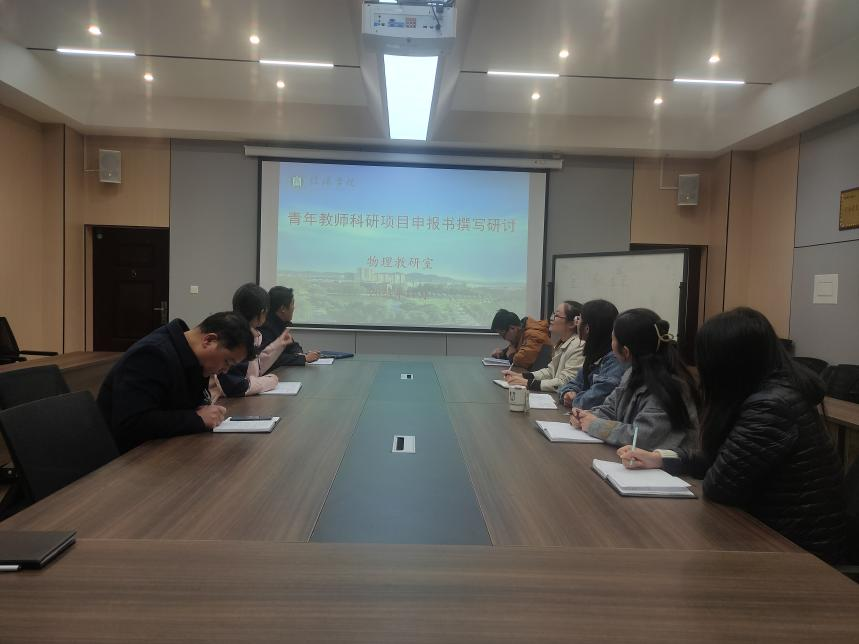 11月19日下午,为进一步提升青年教师的教科研能力和项目申报技巧,物理教研室在理工楼201会议室开展青年教师教科研项目申报书撰写研讨活动。本次教研活动由段君杰老师主持,董玉静老师主讲,物理教研室全体教师参与研讨。