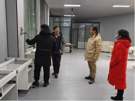 肖院长对贵重仪器测试实验室、测试准备实验室和学术交流室进行了深入的了解和考察,听取了分析测试中心负责人关于实验台建设、气路建设、仪器安装和建设进度等方面的情况汇报,详细询问了工程实施计划、文化建设、功能实现等方面的问题。