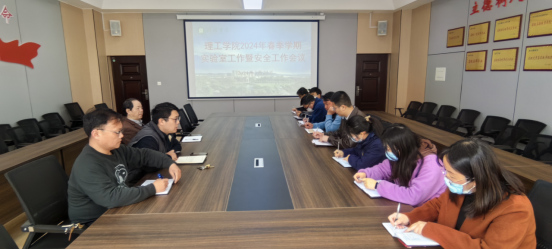 会上,学院实验中心主任杨潇剑从新学期实验室建设、管理制度建设、化学实验室危化品清查、实验室安全管理等方面,对本学期重点工作进行部署,指出实验中心队伍要做到摸家底、立制度、重安全、改形势、建队伍。副主任张锐对新学期消防安全、设备保修以及安全检查汇报了相关情况,并对本学期实验室安全工作进行安排。