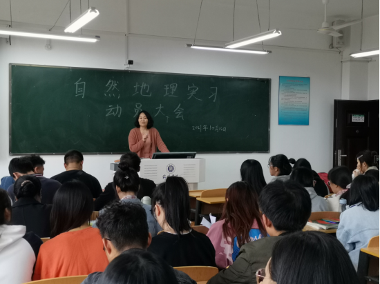 地理科学教研室主任魏新玲副教授首先向同学们介绍了自然地理综合实习的重要性。她指出,自然地理学是一门理论和实践相结合的课程,根据培养方案的要求,这个学期同学们要到大自然中去实践在课堂上所学习的理论知识。同时,通过野外实习,同学们可以更好地掌握自然地理学的研究方法、野外调查的方法及锻炼相关的技能。